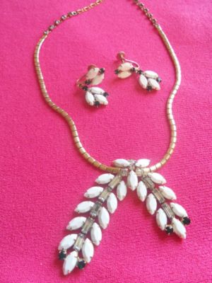 Title (ebay affiliate link): VINTAGE UNSIGNED BEAUTY SET~MILK GLASS FACETED PRONG SET DEMI~NECKLACE & EARRING