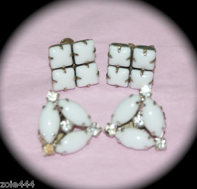 Title (ebay affiliate link): Lot of 2 Pairs Vintage Milk Glass Rhinestone Earrings Clip & Screw Backs