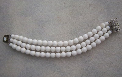 Stunning Triple Strand White Milk Glass Chunky Bracelet..