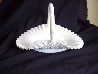 Fenton White Milk Glass Hobnail Oval Bowl Dish Basket
