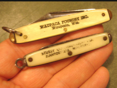 Waupaca Wisconsion Advertising Ad 2 Small Pocket Pen Keychain Antique Vtg Knife