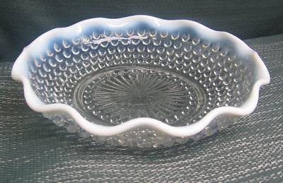 GORGEOUS CLEAR GLASS W MILK WHITE HOBNAIL FENTON BOWL
