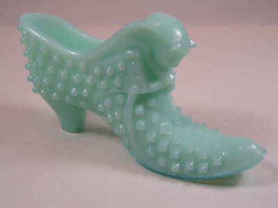 RARE! VINTAGE FENTON GREEN MILK GLASS CAT SHOE HOBNAIL