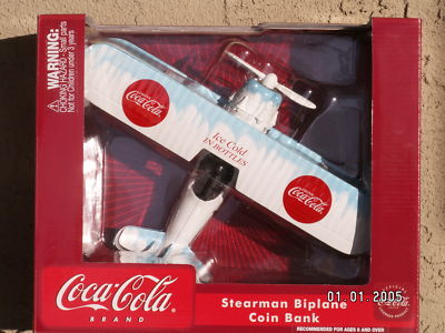 GEARBOX DIECAST METAL 1932 STEARMAN AIRPLANE COCA-COLA BRAND RARE NEW IN BOX