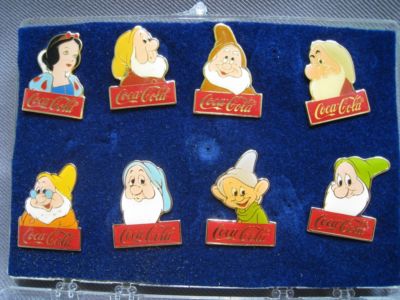 Title (ebay affiliate link): Coca Cola Snow White and Seven Dwarfs Pin Set Disney Made In Taiwan