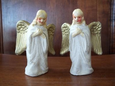 Title (ebay affiliate link): 2 Nice Vtg Kneeling Creche Nativity Chalkware Angels Gilded Details 3-1/8" Japan