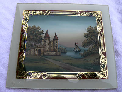 Vintage Antique Ogee Clock Glass, Reverse Painted