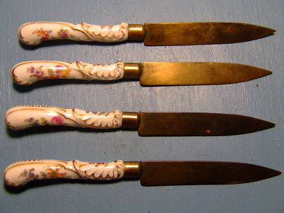 Antique Victorian Desert Knives Porcelain Bronze German Stahl Knife