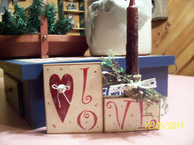 Title (ebay affiliate link): Primitive Valentine LOVE blocks sign shelf sitter with grungy candle