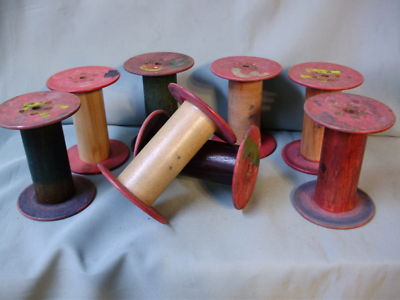 Title (ebay affiliate link): 8 VINTAGE MILL SPOOLS BOBBINS 3 1/2 INCHES TALL