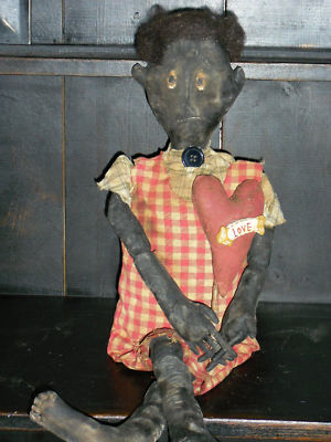 Title (ebay affiliate link): Primitive Black Boy Valentine Doll, Fingers and Toes, Holding a Heart Makedo