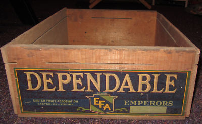 Title (ebay affiliate link): Antique Wood Box Crate Exeter California Fruit Exchange Emperors ~ Nice Label
