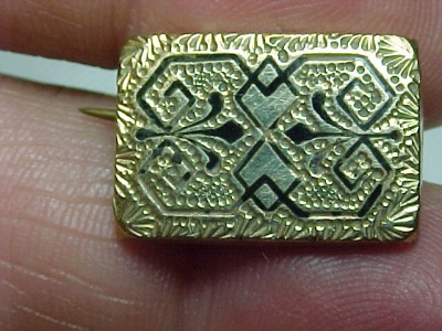 VICTORIAN GOLD FILLED ANTIQUE BLACK ENAMEL SMALL PIN