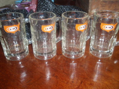 Title (ebay affiliate link): (4) Vintage A&W Root Beer Heavy 6" Handled Advertising Glass Mugs Cups NOS