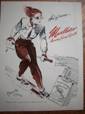 Title (ebay affiliate link): 1942 America's Luxury Marlboro Cigarettes Lady Ski Skiier Bolegard Art Ad