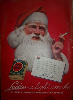 Title (ebay affiliate link): 1937 Lucky Strike Cigarettes Santa Claus Smoking Color Ad