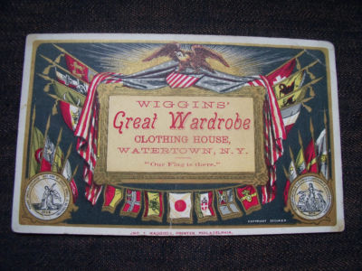 victorian advertising trade card advertising Wiggins Wardrobe clothing store