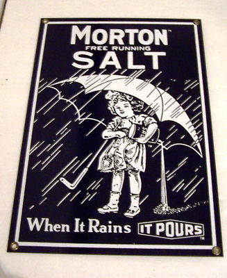 Title (ebay affiliate link): VINTAGE ADVERTISING METAL/PORCELAIN ENAMEL MORTON FREE RUNNING SALT SIGN