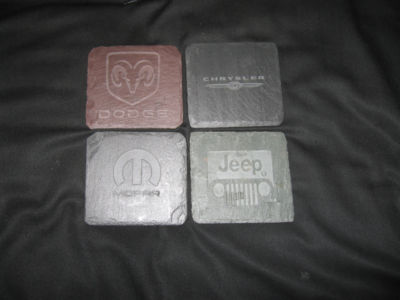 Title (ebay affiliate link): Set of 4 Mopar, Chrysler, Dodge, Jeep Slate Coasters