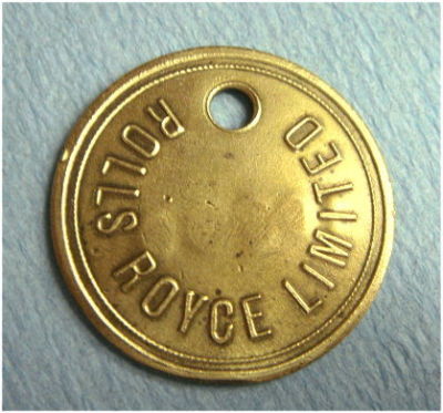 Rare Tool Check Brass Tag: ROLLS ROYCE LTD Luxury Cars