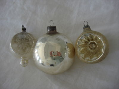 Title (ebay affiliate link): Three antique mercury glass Christmas ornaments silver Germany