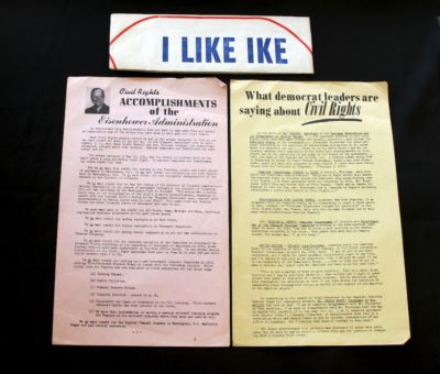 Eisenhower campaign hat and campaign flyers.