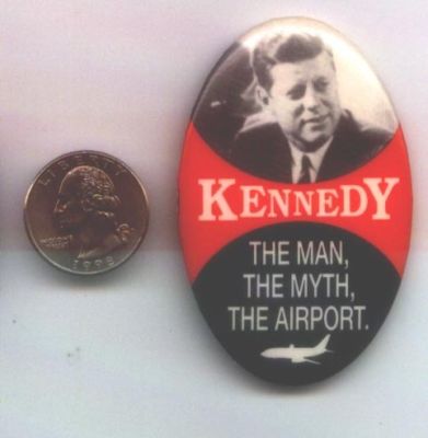 Kennedy humor button "...the man, myth, Airport" 1990's