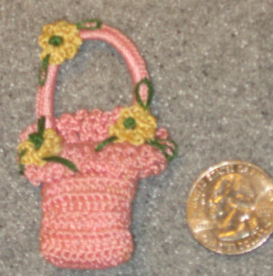 Title (ebay affiliate link): Tiny Vintage Crochet Flower Basket for Antique All bisque or small German doll