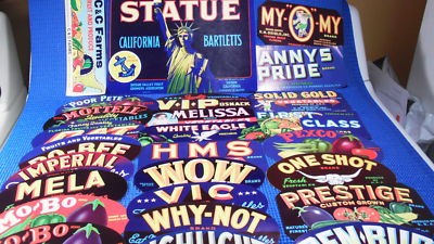 Title (ebay affiliate link): LOT 26 USA VINTAGE OLD FRUIT & VEGETABLE CRATE LABELS NO DUPES VGC