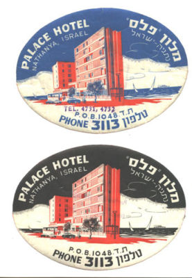 Palace Hotel NATHANYA Israel - 2 vintage luggage labels