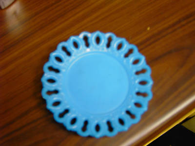ANTIQUE BLUE MILK GLASS FANCY PLATE, NR.