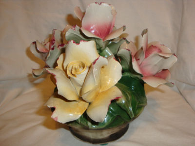 Title (ebay affiliate link): Capodimonte 7 1/2" Tall Round Container Roses Yellow & Pink