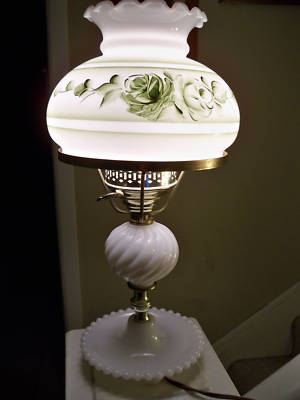 Vintage Hobnail White Milk Glass Hurricane Table Lamp