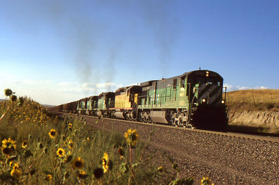 Title (ebay affiliate link): Original slide-Burlington Northern C30-7 #5592 & Train/ Crawford Hill,NE.Nice!!
