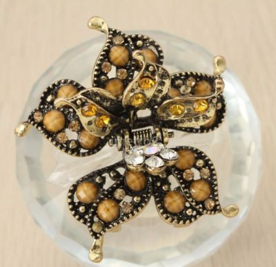 Title (ebay affiliate link): Floral brown yellow swarovski crystals antique bronze hair claw clamp clip