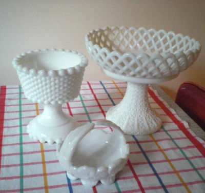 3 Vtg Milk Glass Reticulated Bowl Pedestal Candy Dishes
