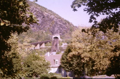 Scenic railroad shot of Harpers Ferry West Virginia September 1976
