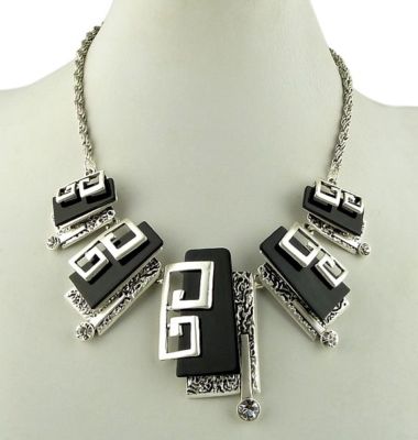 Title (ebay affiliate link): Vintage antique art deco style retro silver and black necklace geometric pattern