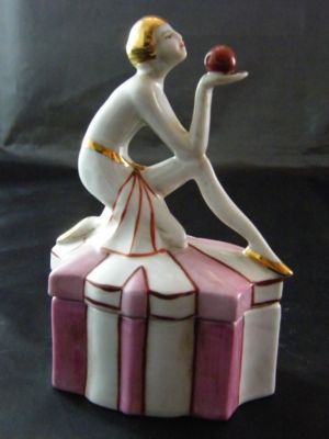 ART DECO HAND PAINTED PORCELAIN TRINKET POT