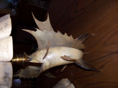 VINTAGE HORN FISH LAMP HAND MADE & CARVED MEXICO