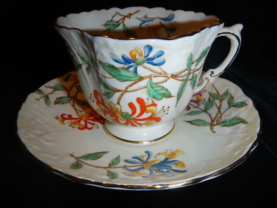 Aynsley Jasmine Floral Cream Bone China Cup & Saucer England Excellent