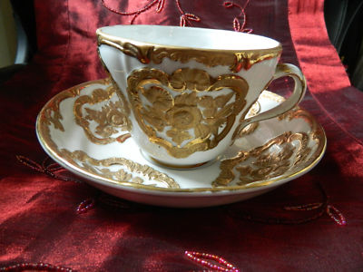 ANTIQUE PORCELAIN, CHINA, TEA CUP GOLD LEAF, LARGE SERVER, DECORATIVE ARTS BOWL
