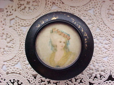 RARE VICTORIAN ANTIQUE PORTRAIT JEWELRY RING HOLDER BOX SATIN BAKELITE