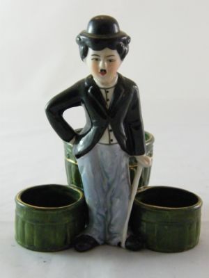 HAND PAINTED POTTERY CHARLIE CHAPLIN TRINKET POT