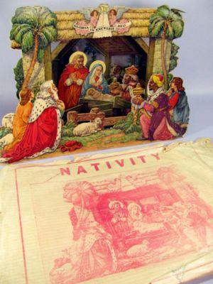 Title (ebay affiliate link): early / vtg CHRISTMAS CRECHE * 3D fold-out Nativity Manger Scene * Made in USA