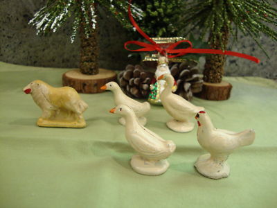 VINTAGE PUTZ SET DOG HERDER & GEESE