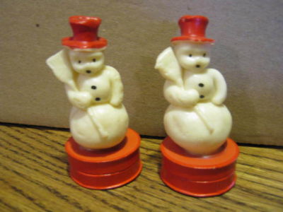 Title (ebay affiliate link): Two Vintage Wax Snowman Figures on rRound Red Cardboard Box Candy Containers