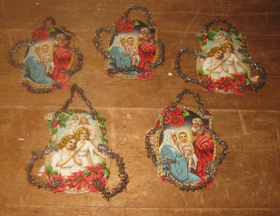 Title (ebay affiliate link): Lot Antique Die Cut Scrap Ornaments Lead Tinsel Ornament Angels Nativity