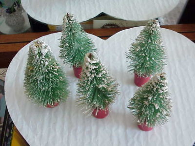 Title (ebay affiliate link): vintage LOT bottle brush Christmas village trees with snow EXCELLENT used cond