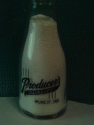 rare producer's quality glass milk bottle from muncie,ind. 1/3 quart
